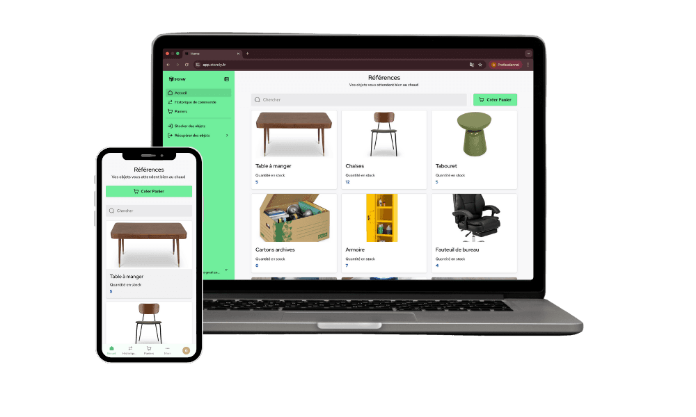 Storely est une solution clé en main de stockage et de garde-meuble pour entreprise, pensée pour tous vos biens professionnels : mobilier de bureau, équipements, matériel événementiel ou surplus temporaire. Nous organisons la collecte sur site, avec nos manutentionnaires et les véhicules adaptés. Chaque objet est inspecté, photographié et mesuré afin de créer une fiche digitale, consultable à tout moment depuis votre espace client. Vos biens sont ensuite entreposés dans des dépôts partenaires sécurisés en Île-de-France, accessibles uniquement par nos équipes. Depuis votre interface en ligne, vous visualisez l’ensemble de votre inventaire digitalisé, constituez des paniers, réservez des créneaux de restitution et recevez des notifications à chaque mouvement. Cette approche vous permet de libérer immédiatement vos bureaux tout en bénéficiant d’un garde-meuble professionnel flexible, combinant sécurité, traçabilité et simplicité de gestion.